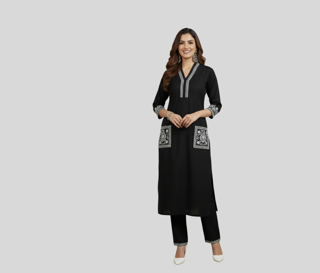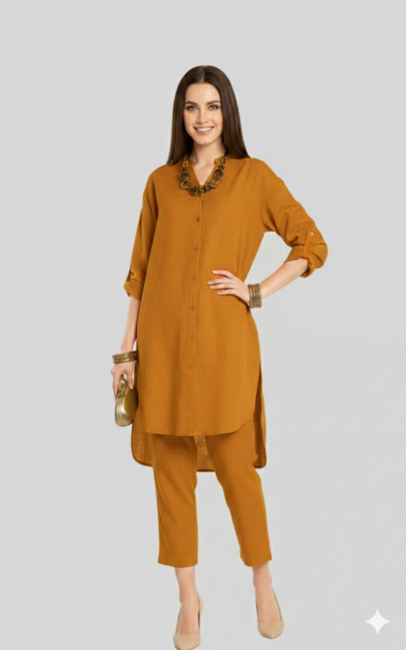 Nadia 2 Stylish Co-ord Set With Collared And Brown Trimmings
