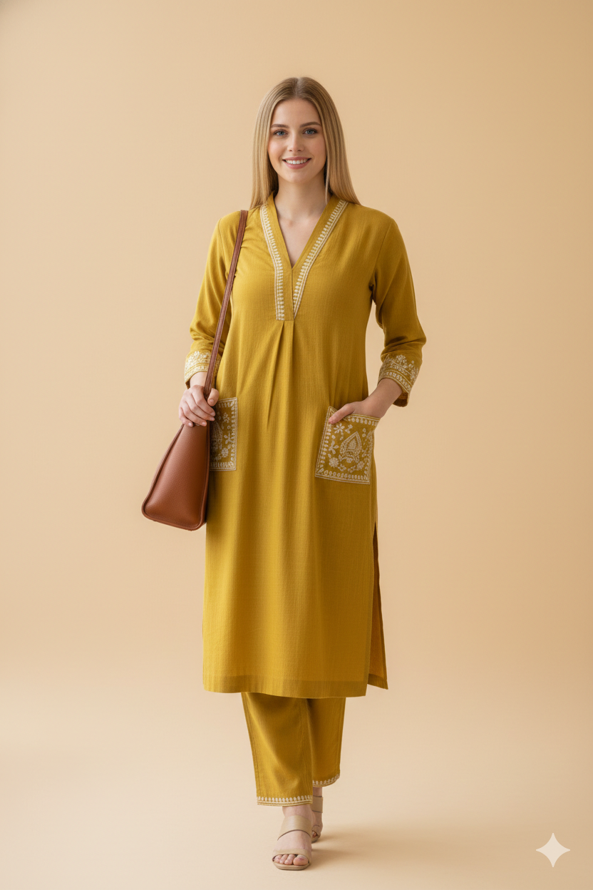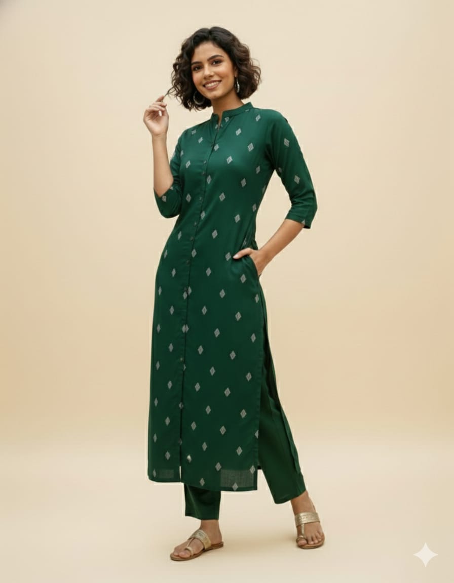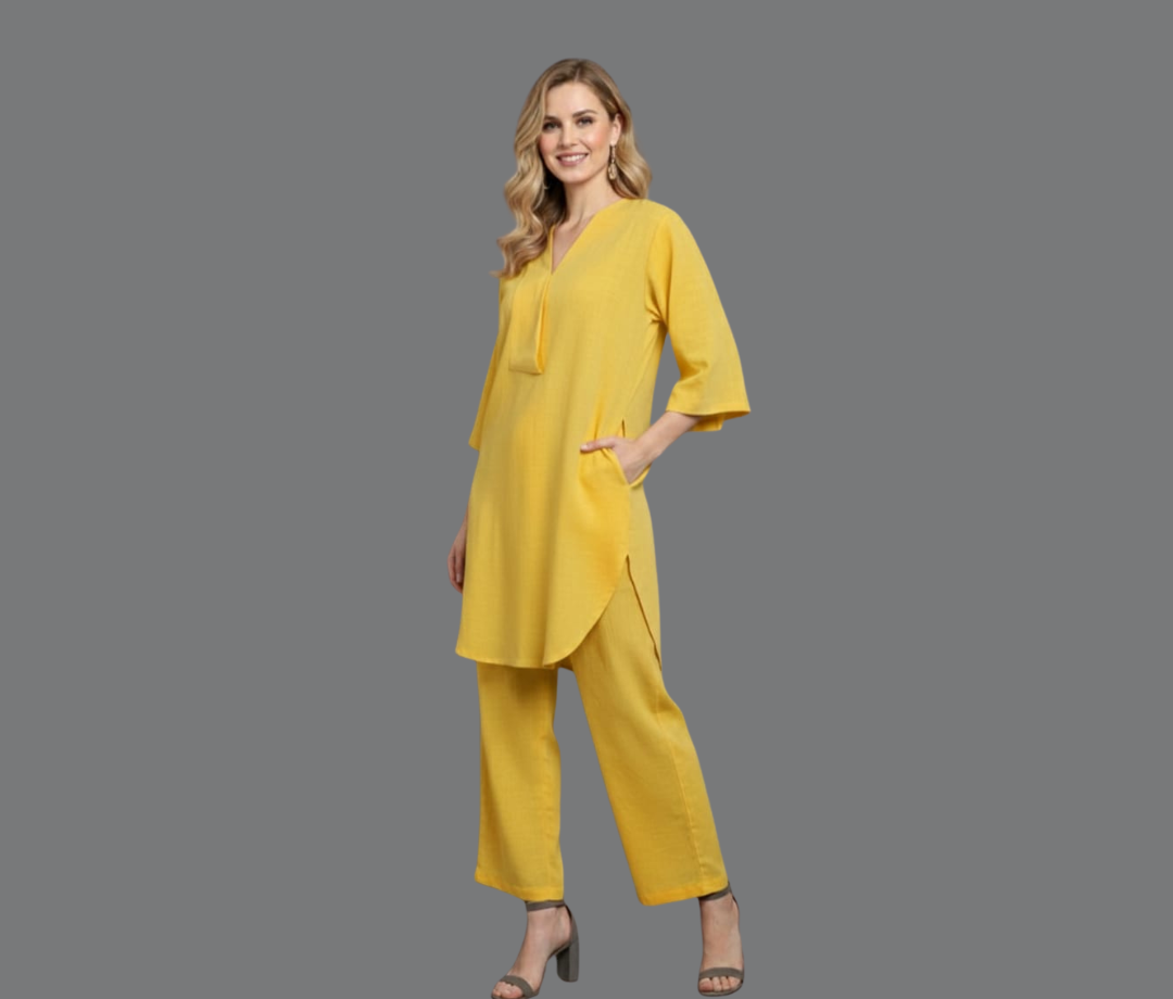This Casual Outfit of Co-ord Set in Fresh Cottons. The Kurta Tunic is straight cut...