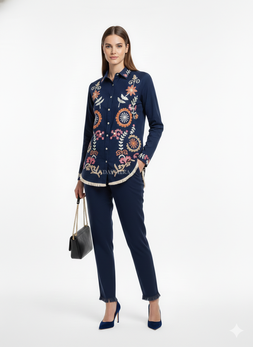 Stylo R-Blue The v-Neck blue Cotton Kurta Set The Calf Leight Kurta With Stylish Long...