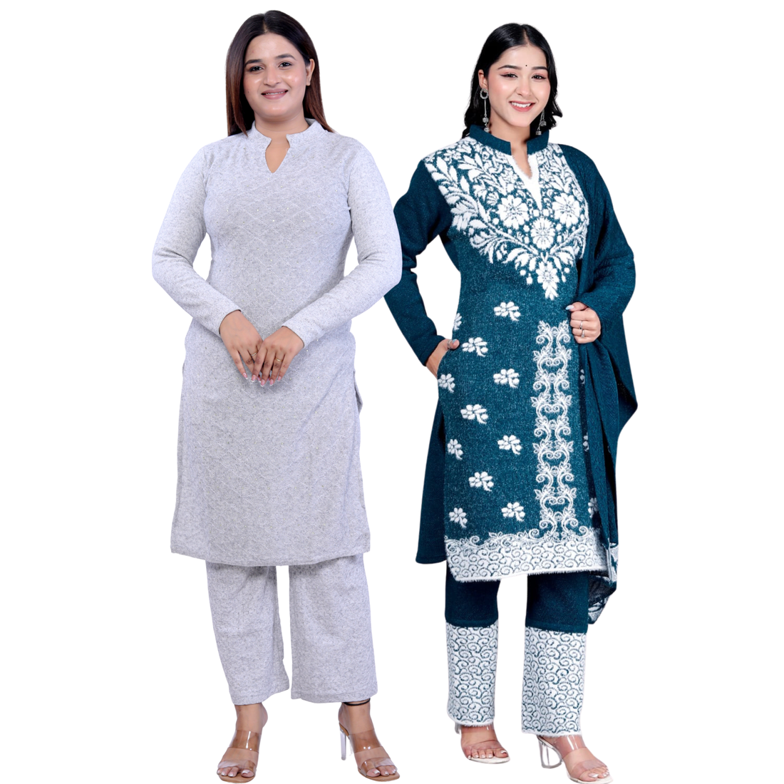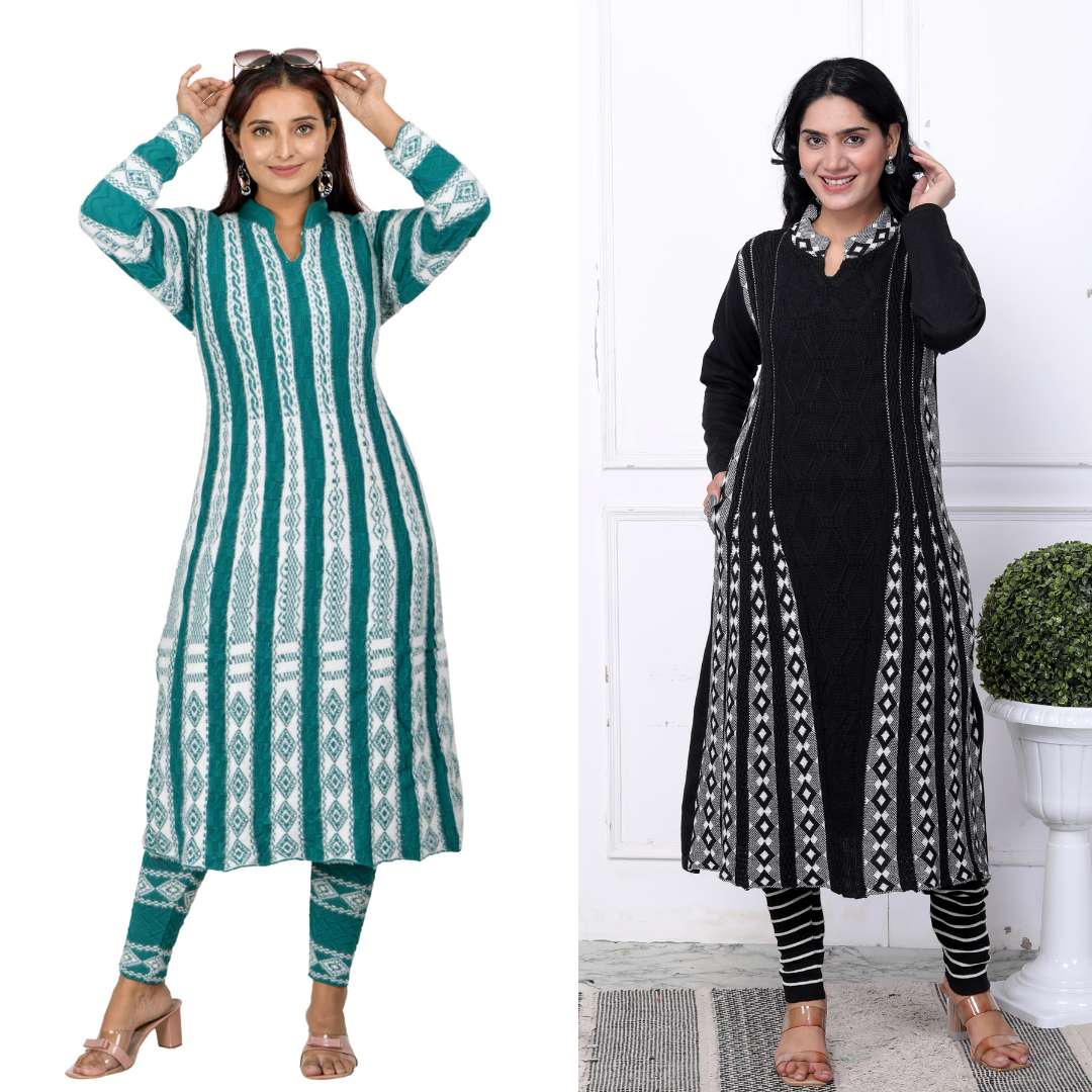 Buy 2 Woolen Kurti Suit With Premium Woolen with Long Sleeves Stylish neck Regular fit ...