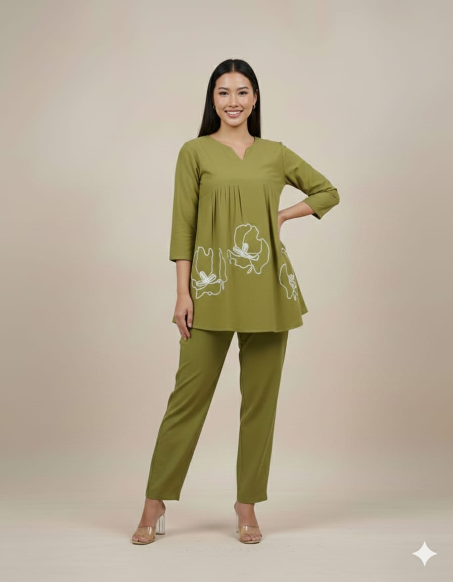 New launchcoord - set for all seasons Premium cotton flex top with beautifuly embroidery...