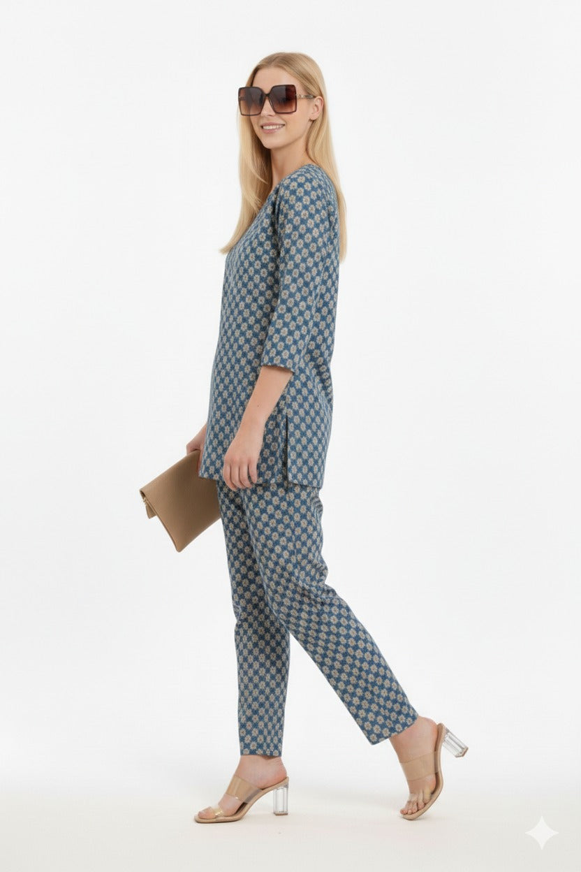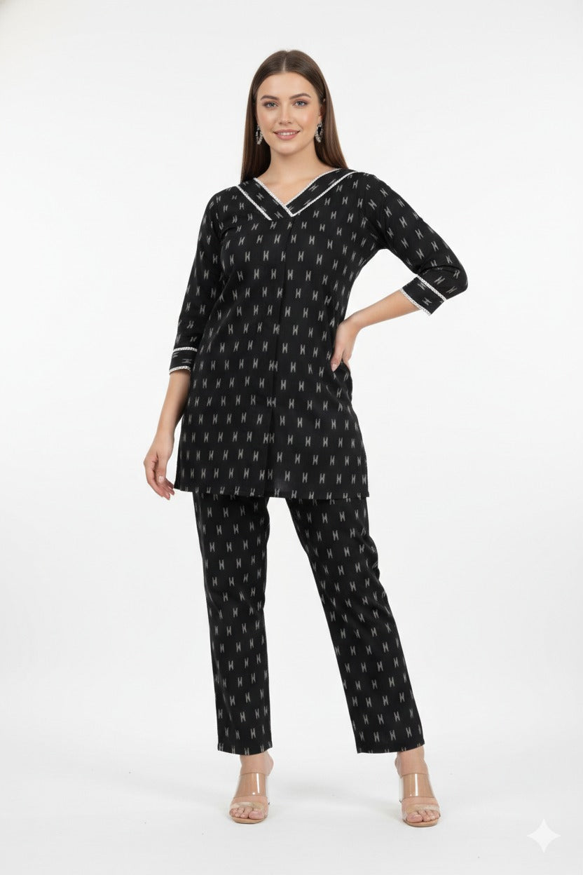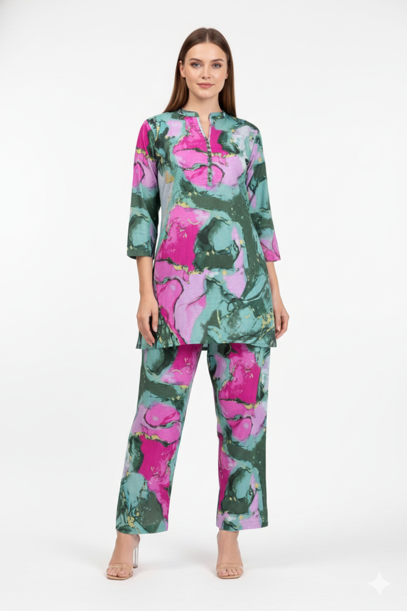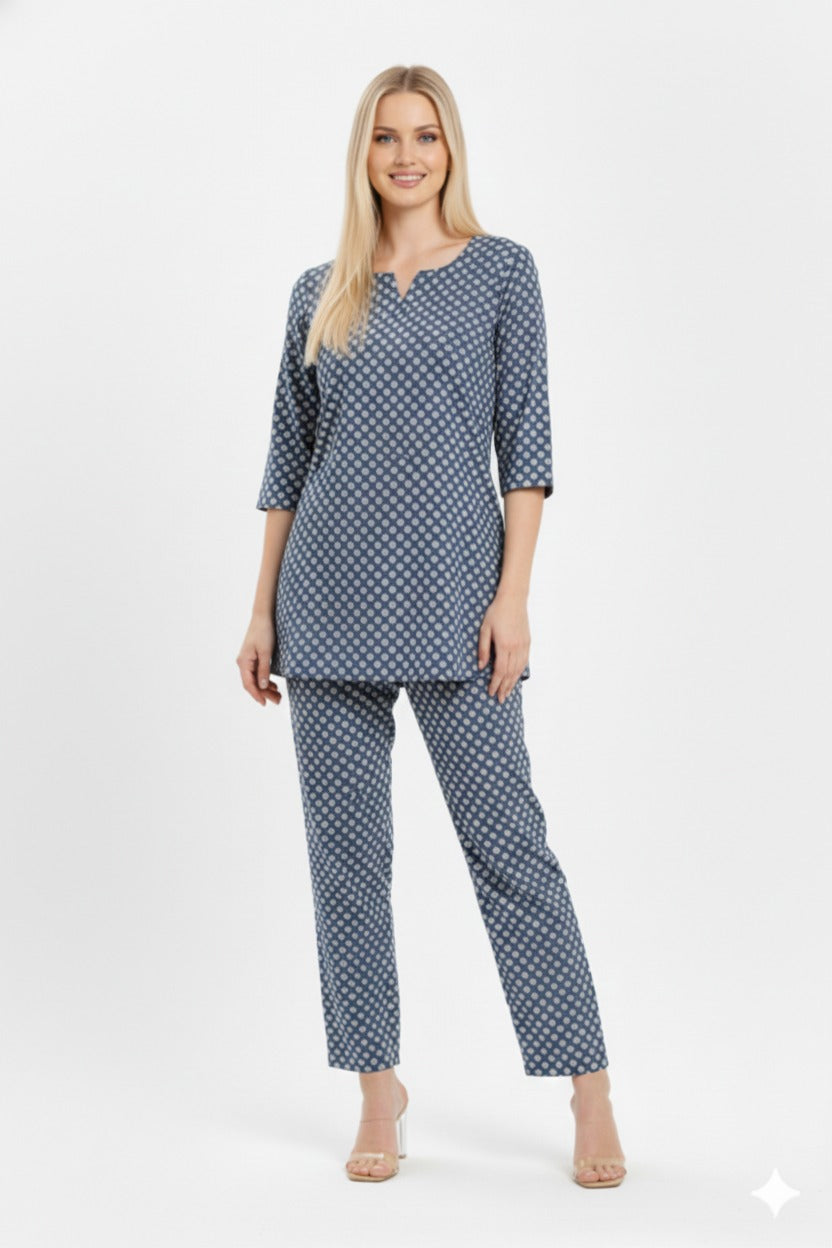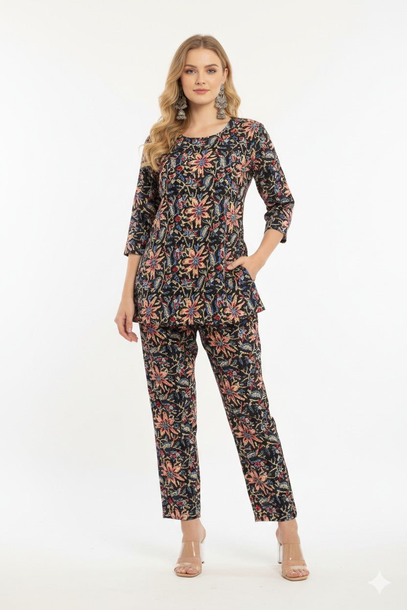 Cotton FLEX printed 2pc CO-or set / lounge wear Fabric - COTTON FLEX Top length...