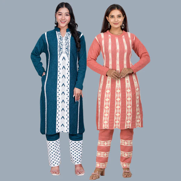 Buy 2 Woolen Kurti Suit With Premium Woolen with Long Sleeves Stylish neck Regular fit ...