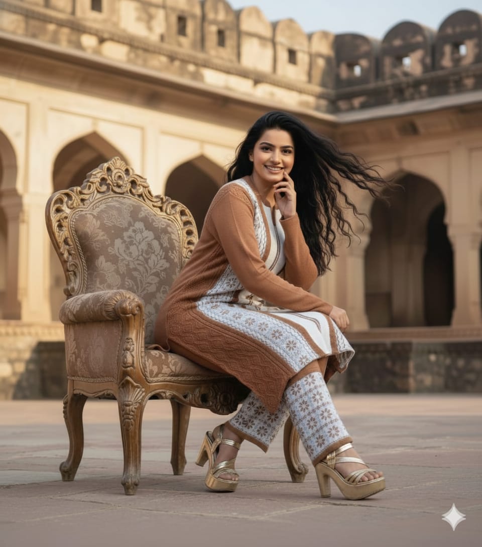 “This woolen kurti suit is crafted with soft, warm fabric that feels cozy yet stylish....