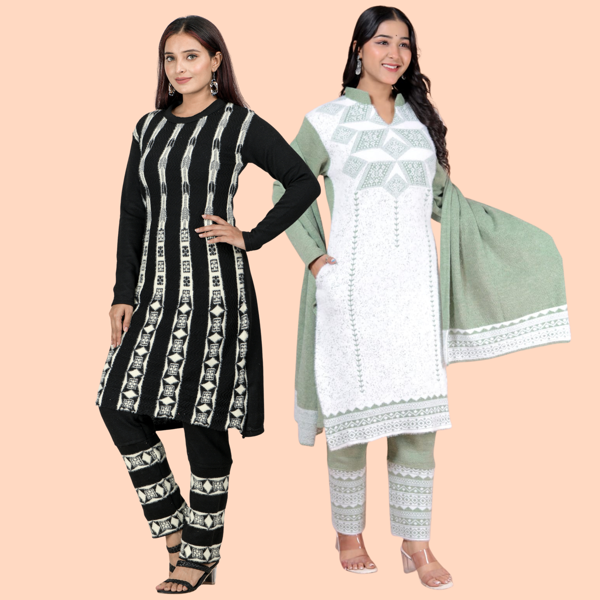 Beat the cold with this super-comfy and fashionable woolen kurti suit.A warm, lightweight, and stunning woolen suit for everyday elegance.