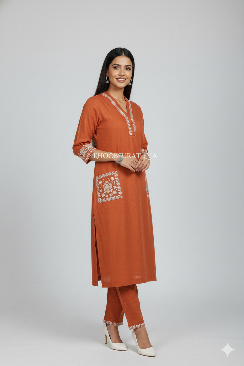 Perfect Outfit for office and Regular wear.Beautiful Heavy Embroidery on both sides pocket