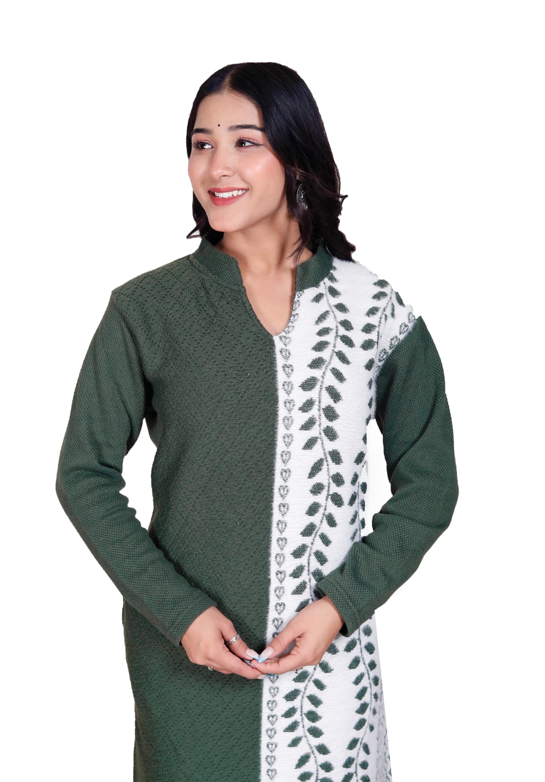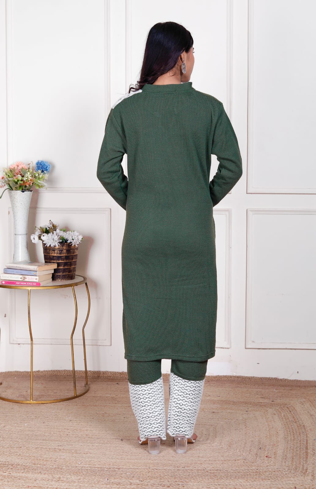 Beat the cold with this super-comfy and fashionable woolen kurti suit.A warm, lightweight, and stunning woolen suit for everyday elegance.