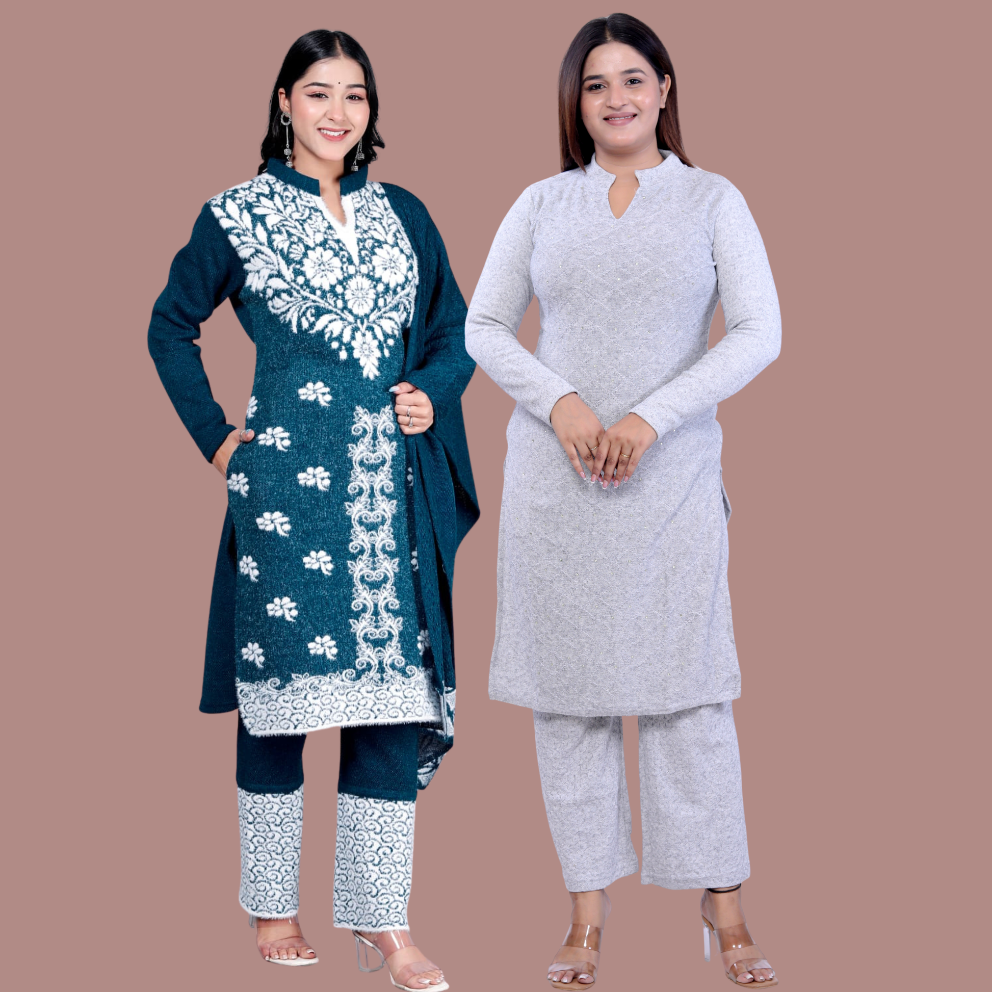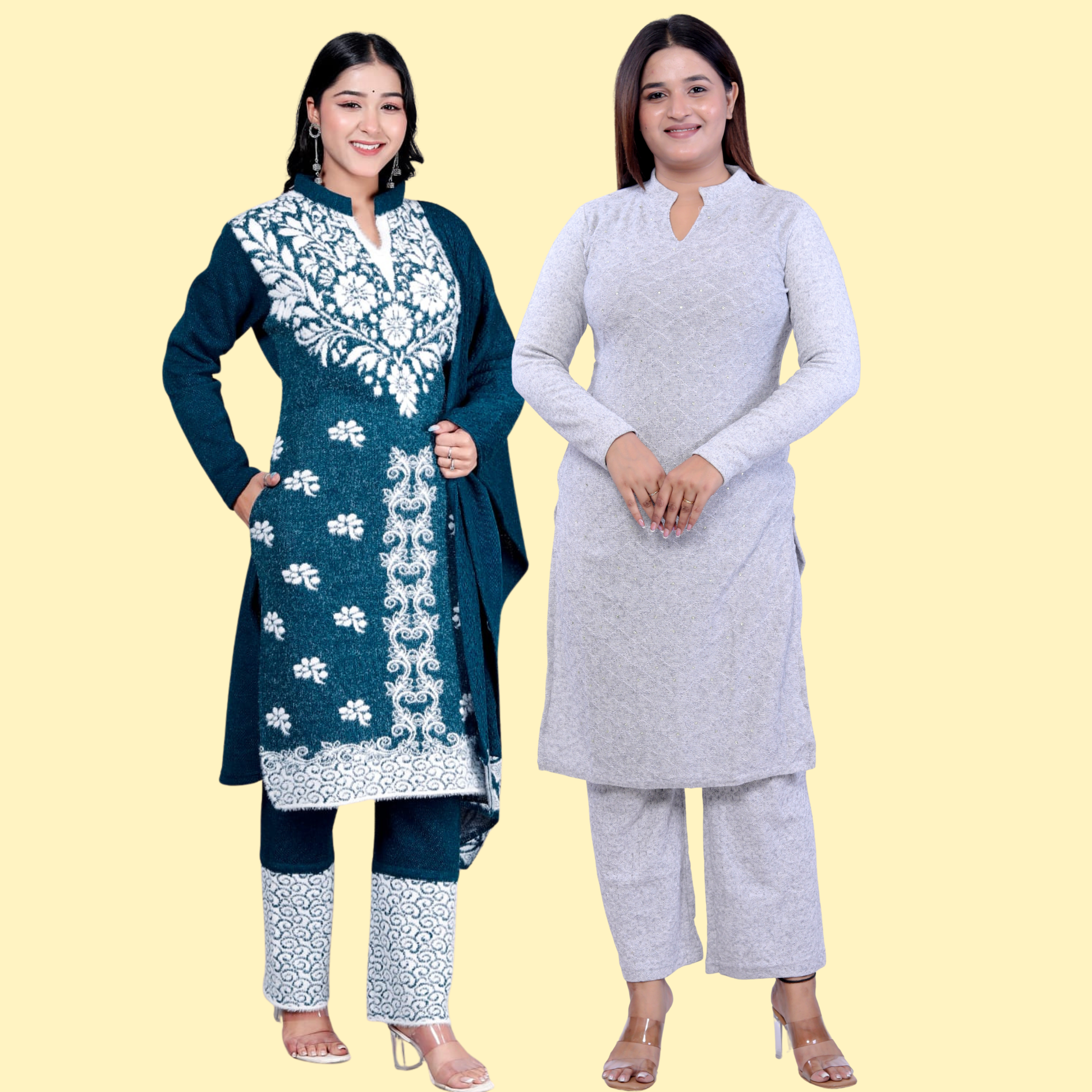 Beat the cold with this super-comfy and fashionable woolen kurti suit.A warm, lightweight, and stunning woolen suit for everyday elegance.