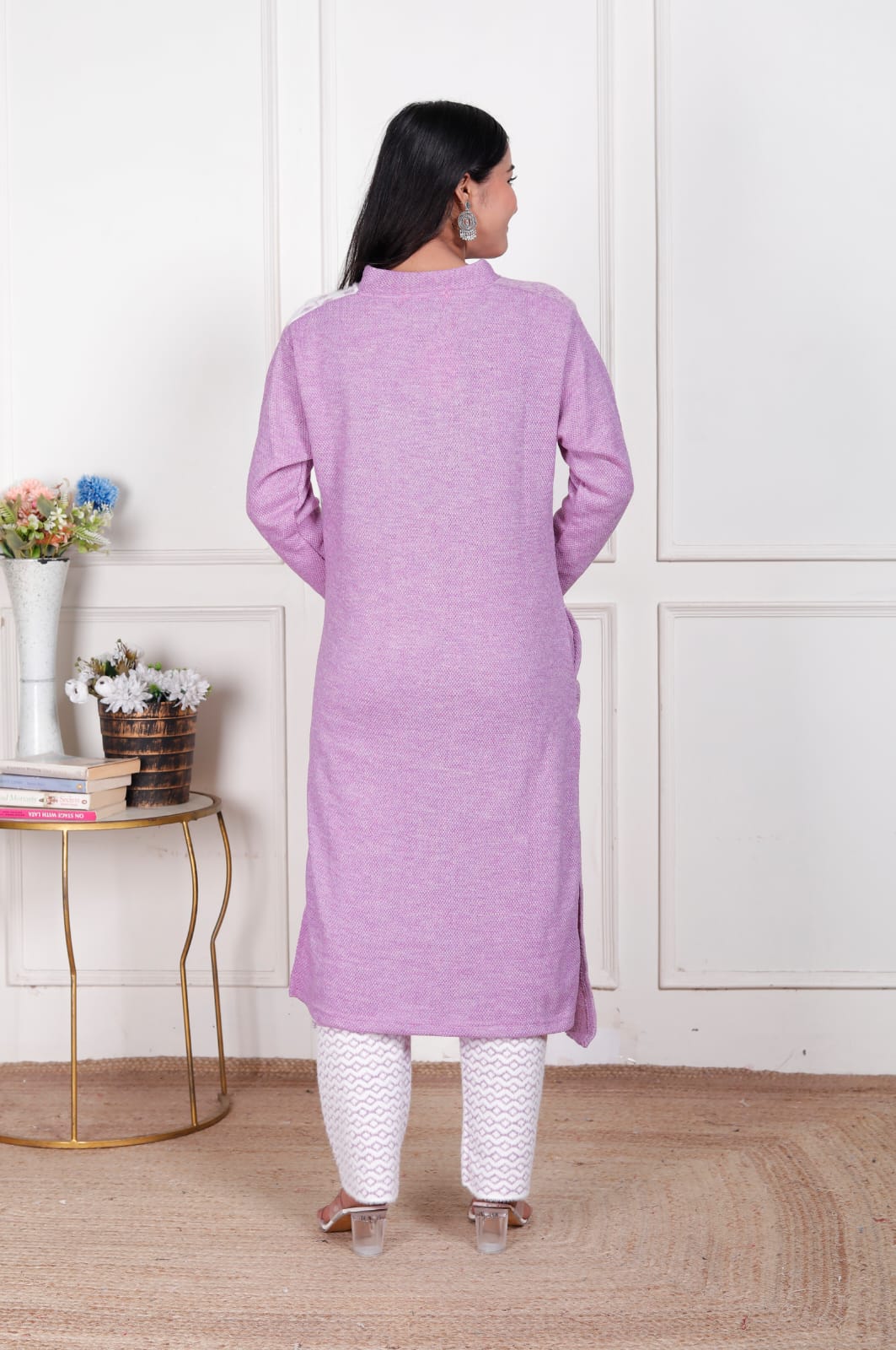 Beat the cold with this super-comfy and fashionable woolen kurti suit.A warm, lightweight, and stunning woolen suit for everyday elegance.