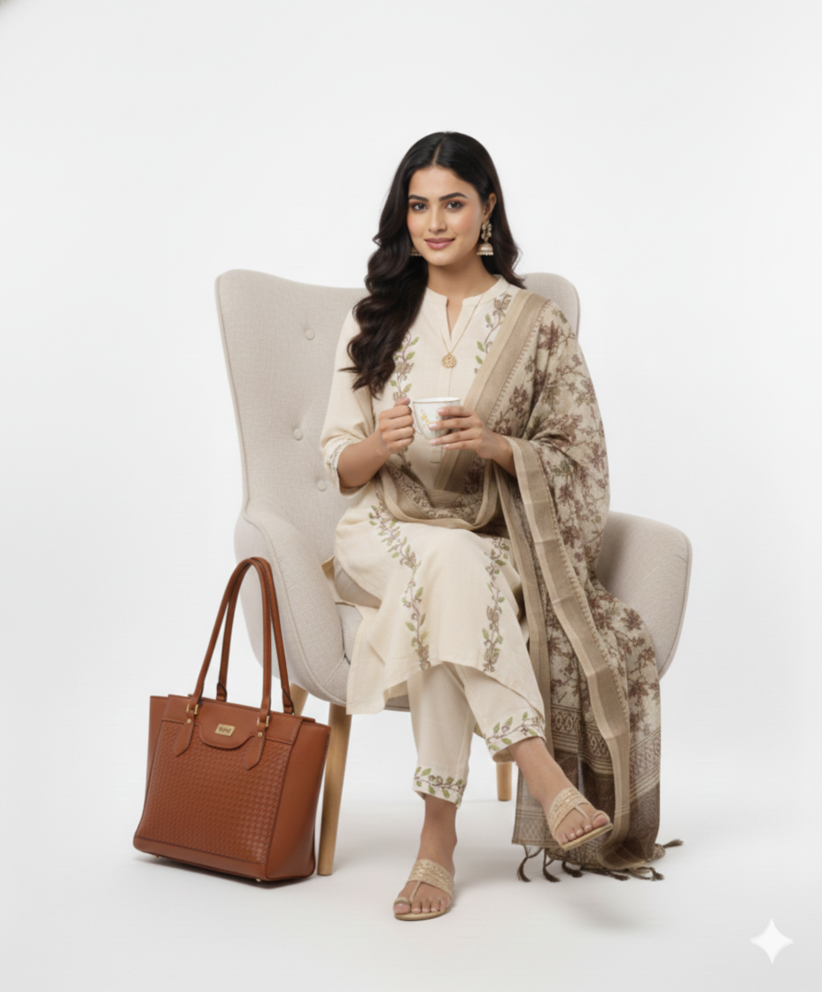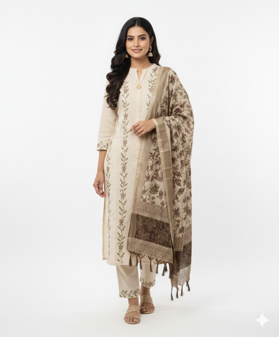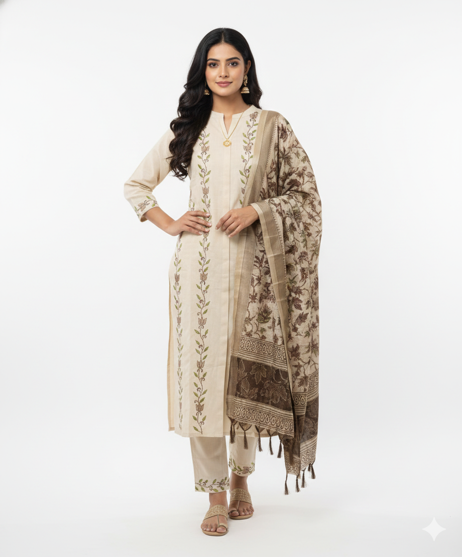 classy embroidery πͺ‘ πͺ‘ πͺ‘ handloom set with khadi silk floral banarasi print duppta handloom cotton kurti with embroidery πͺ‘ πͺ‘ πͺ‘ workβ€οΈβ€οΈβ€οΈππππππ