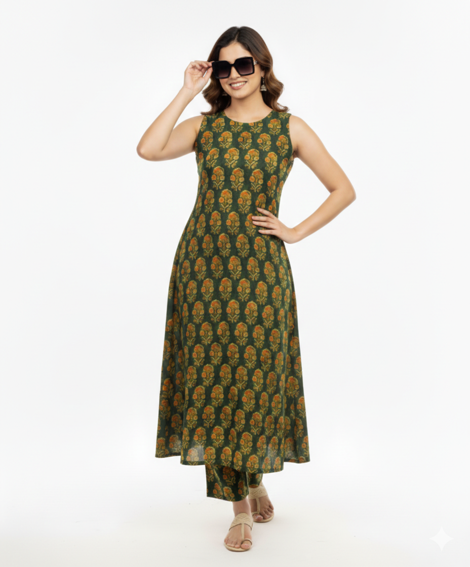 Premium Floral cambric cotton kurti Palazza set
