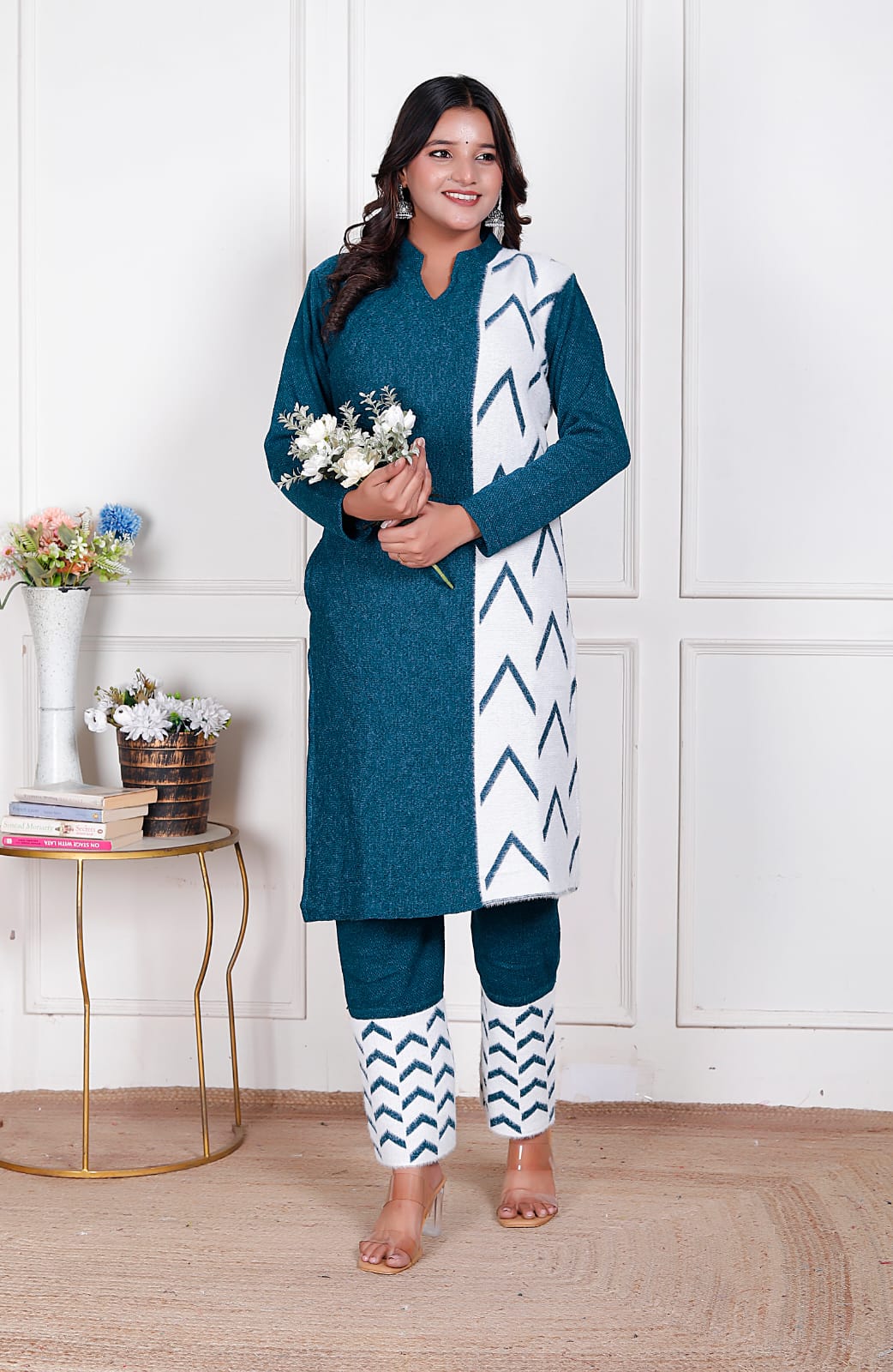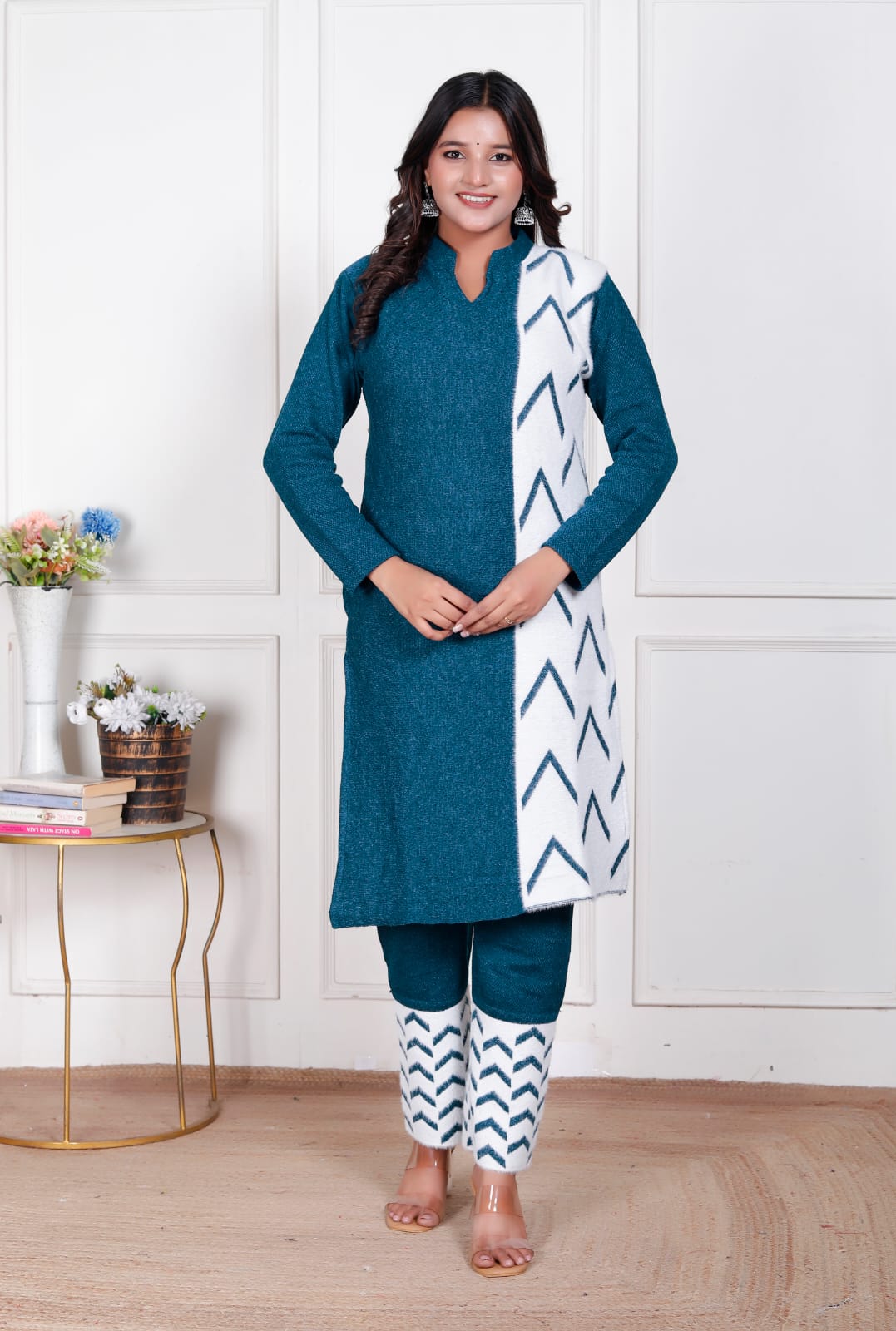 Beat the cold with this super-comfy and fashionable woolen kurti suit.A warm, lightweight, and stunning woolen suit for everyday elegance.
