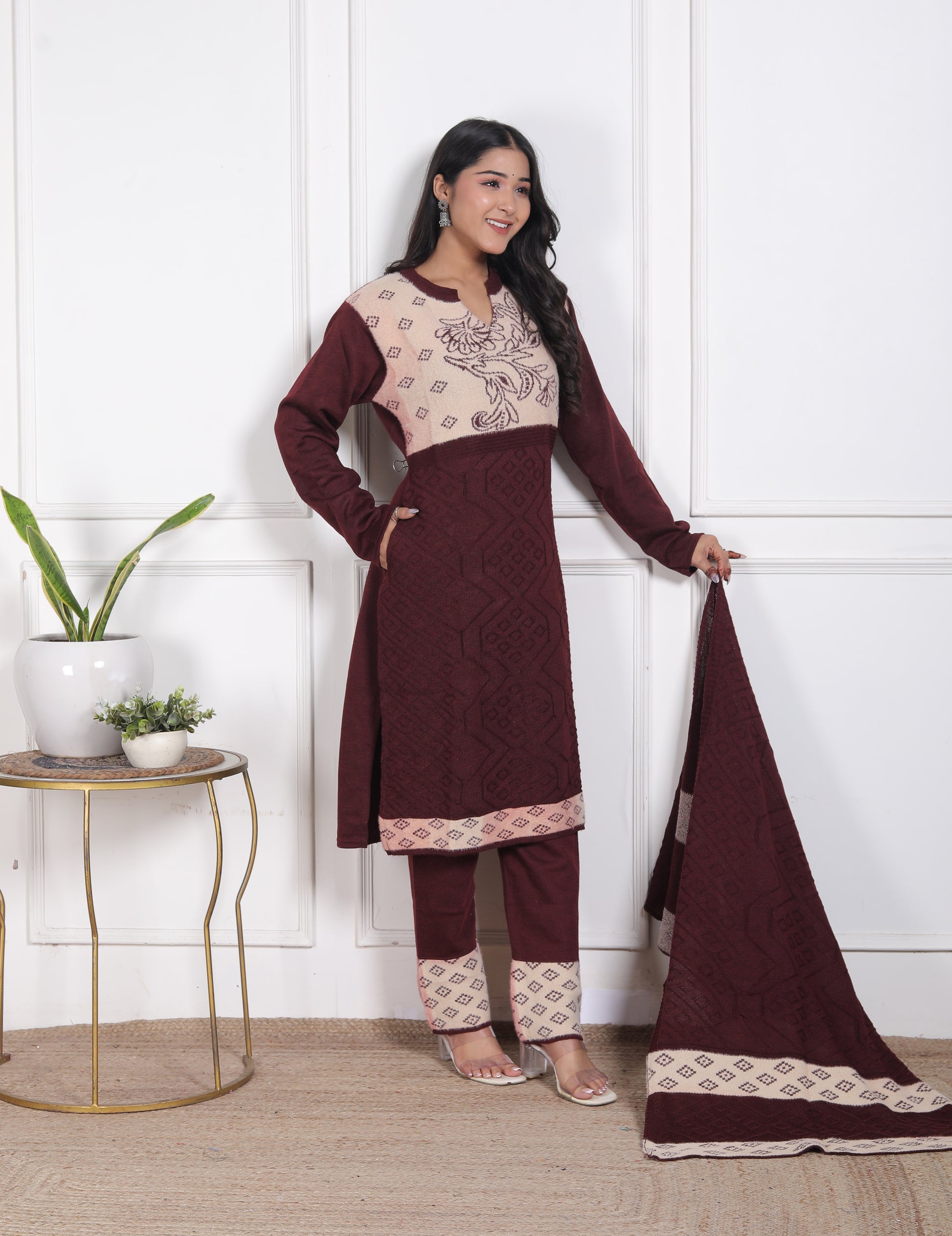 STYLISH AND BEAUTIFUL WOOLEN WINTER WEAR KURTI SUIT SETS FOR YOU
