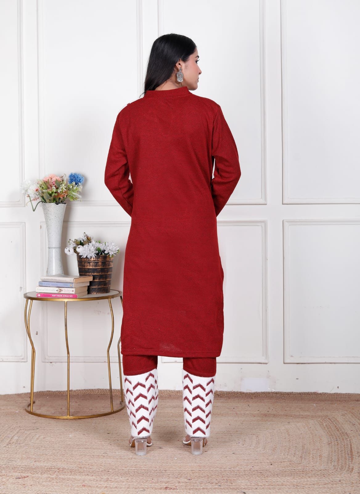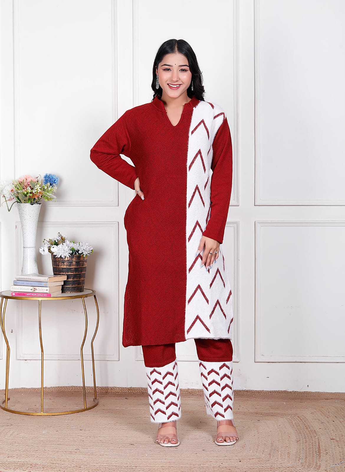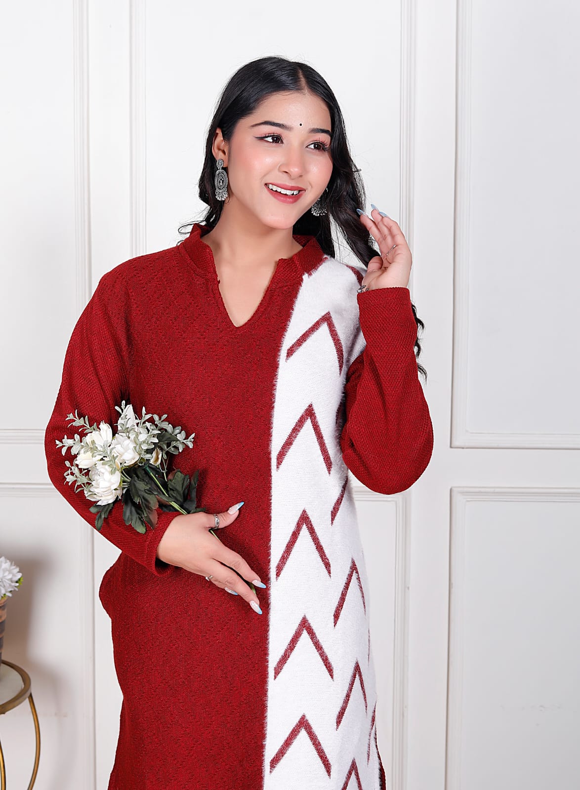 Beat the cold with this super-comfy and fashionable woolen kurti suit.A warm, lightweight, and stunning woolen suit for everyday elegance.