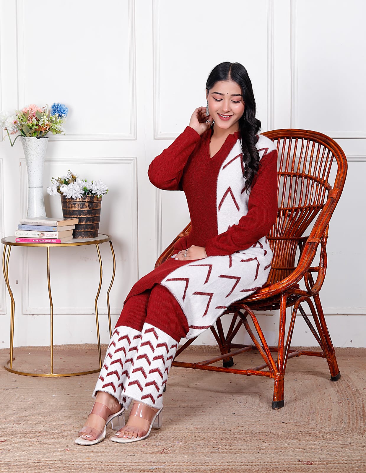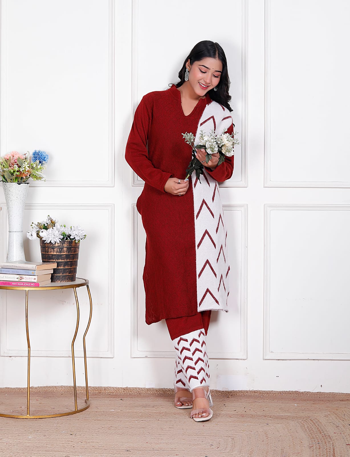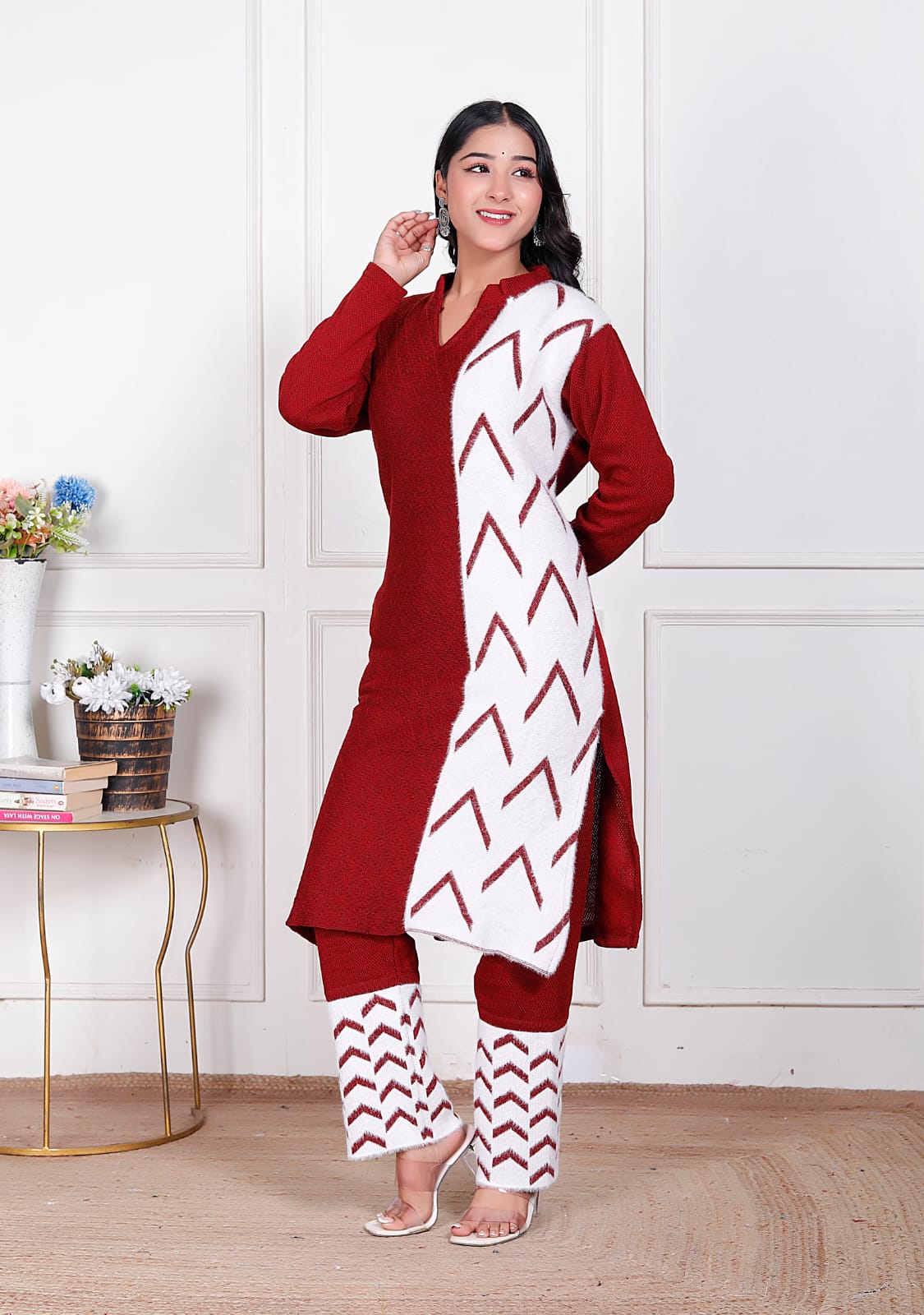 Beat the cold with this super-comfy and fashionable woolen kurti suit.A warm, lightweight, and stunning woolen suit for everyday elegance.