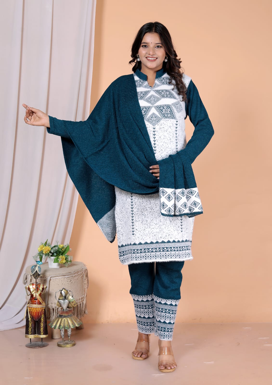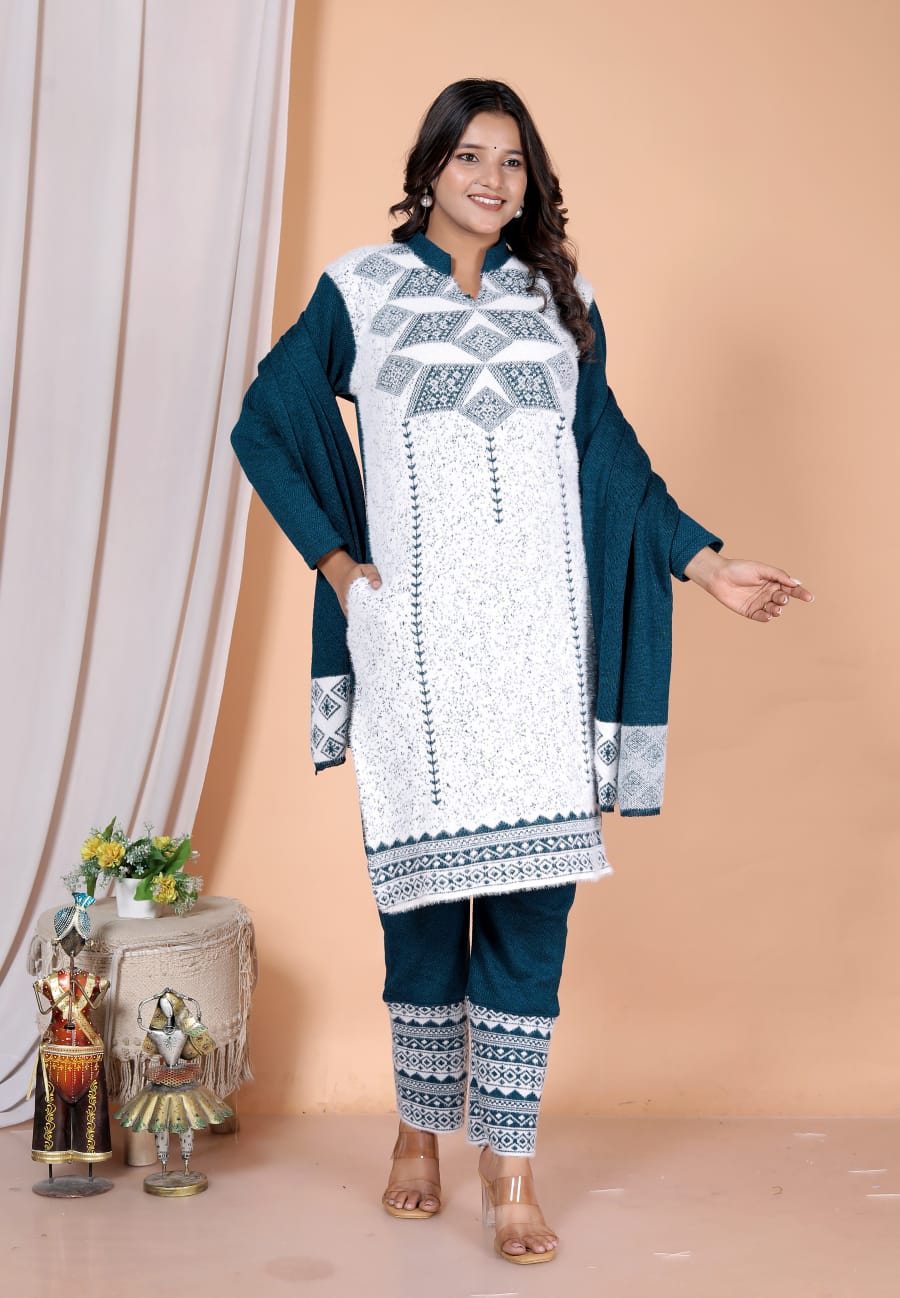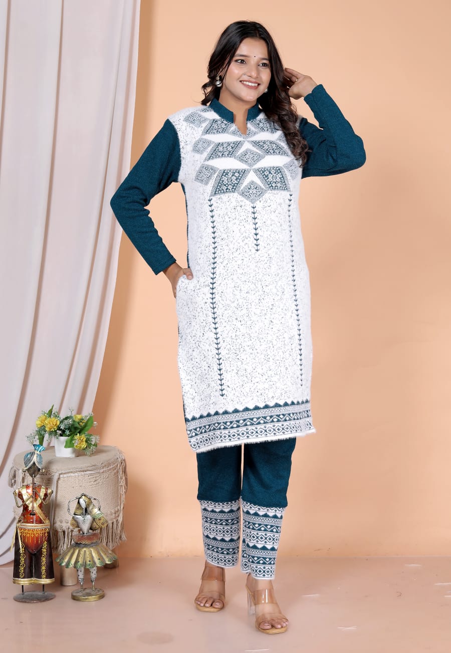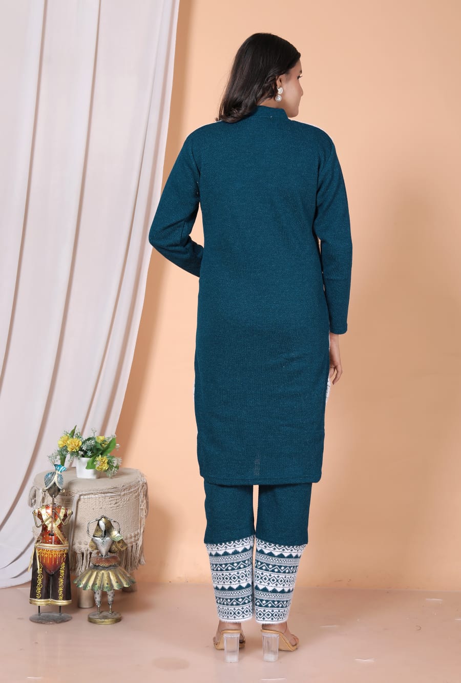 Beat the cold with this super-comfy and fashionable woolen kurti suit.A warm, lightweight, and stunning woolen suit for everyday elegance.