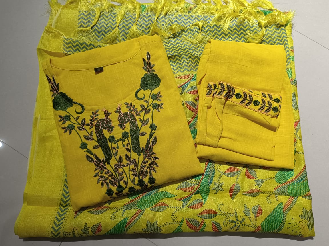 👉PANT- COTTON SLUB PANTS WITH EMBROIDERY WORK