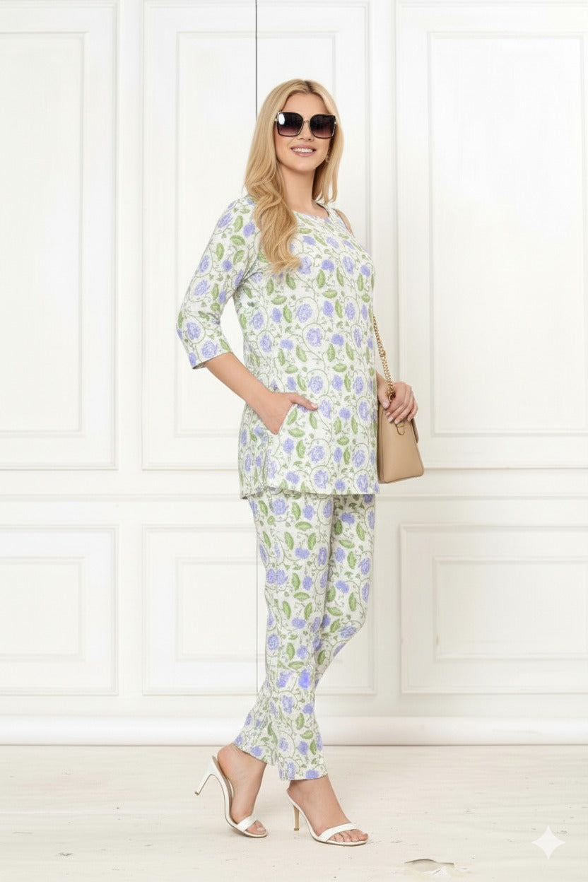 Light, airy, and feminine—this set is designed for the woman who values comfort without sacrificing her style edge.Thoughtfully designed with twin front pockets, combining practical utility with a casual, hands-in-pockets vibe.
