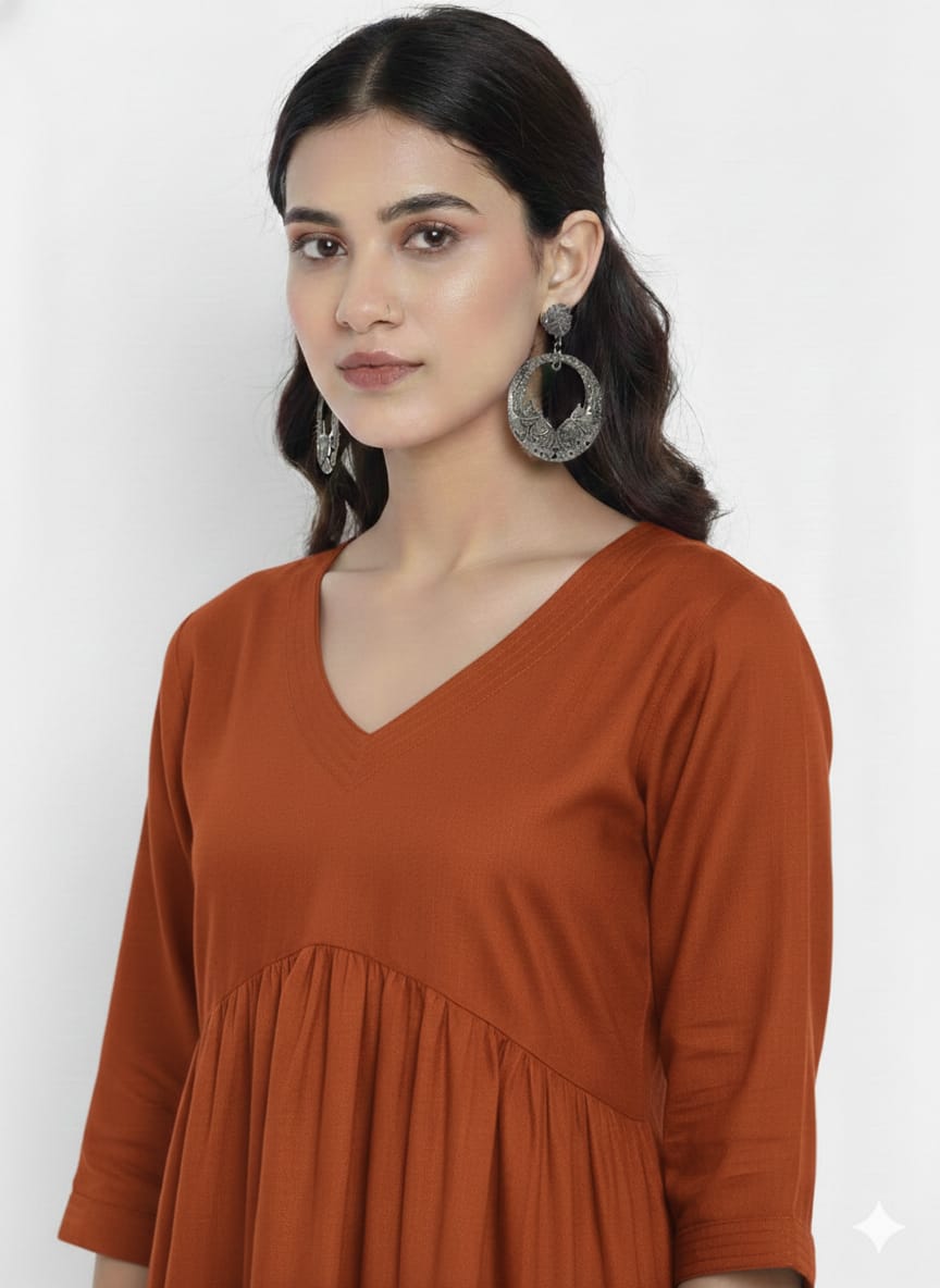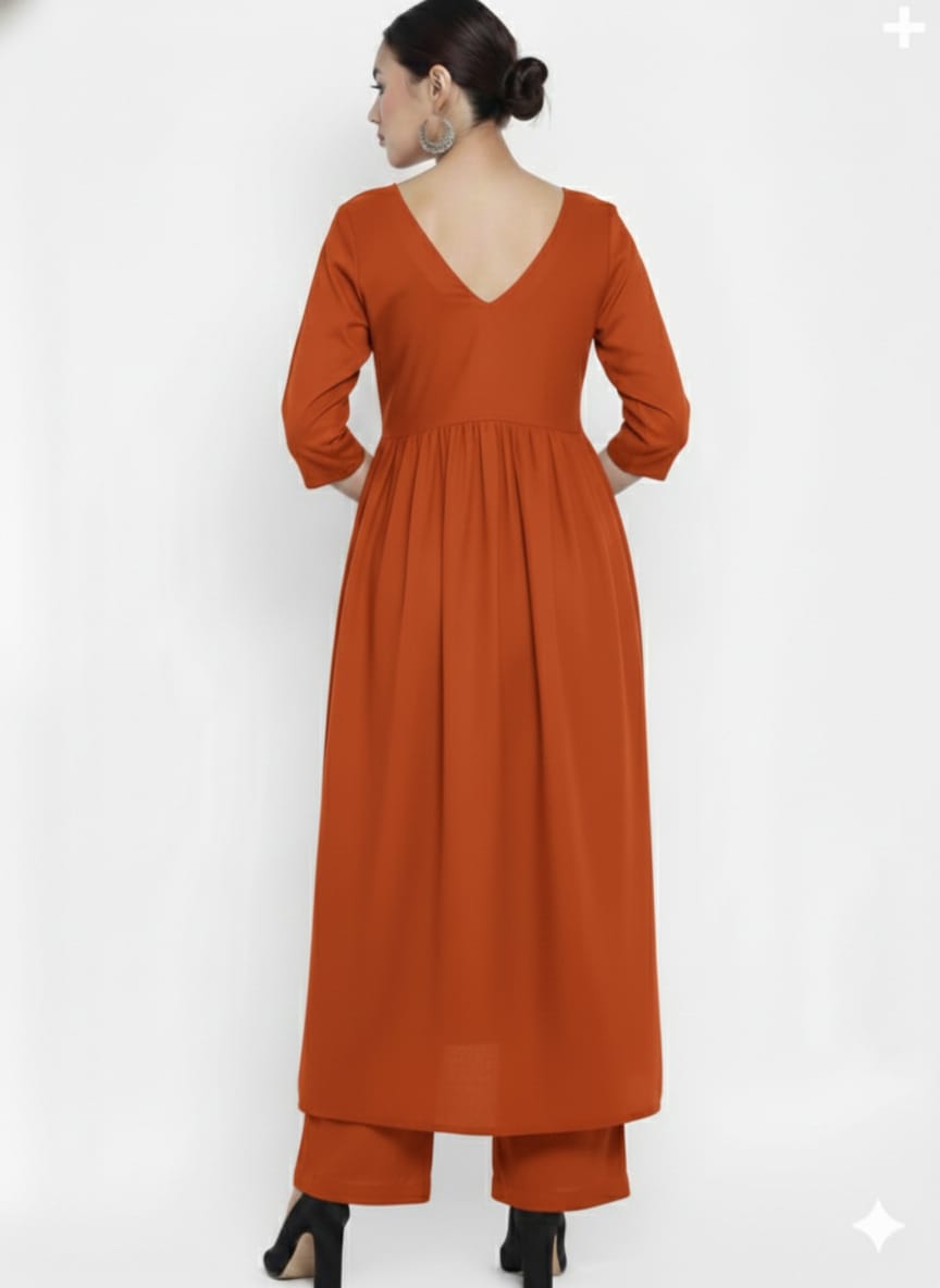 Paris Tip The v-Neck Rest Orange Cotton Kurta Set The Calf Leight Kurta With Stylish Long Side Slit Set has V-Neck in Fontana The Deep Stylish V-Neck In Back With Folded SlevesThe Kurta Beautiful and Modern Silhouette