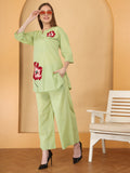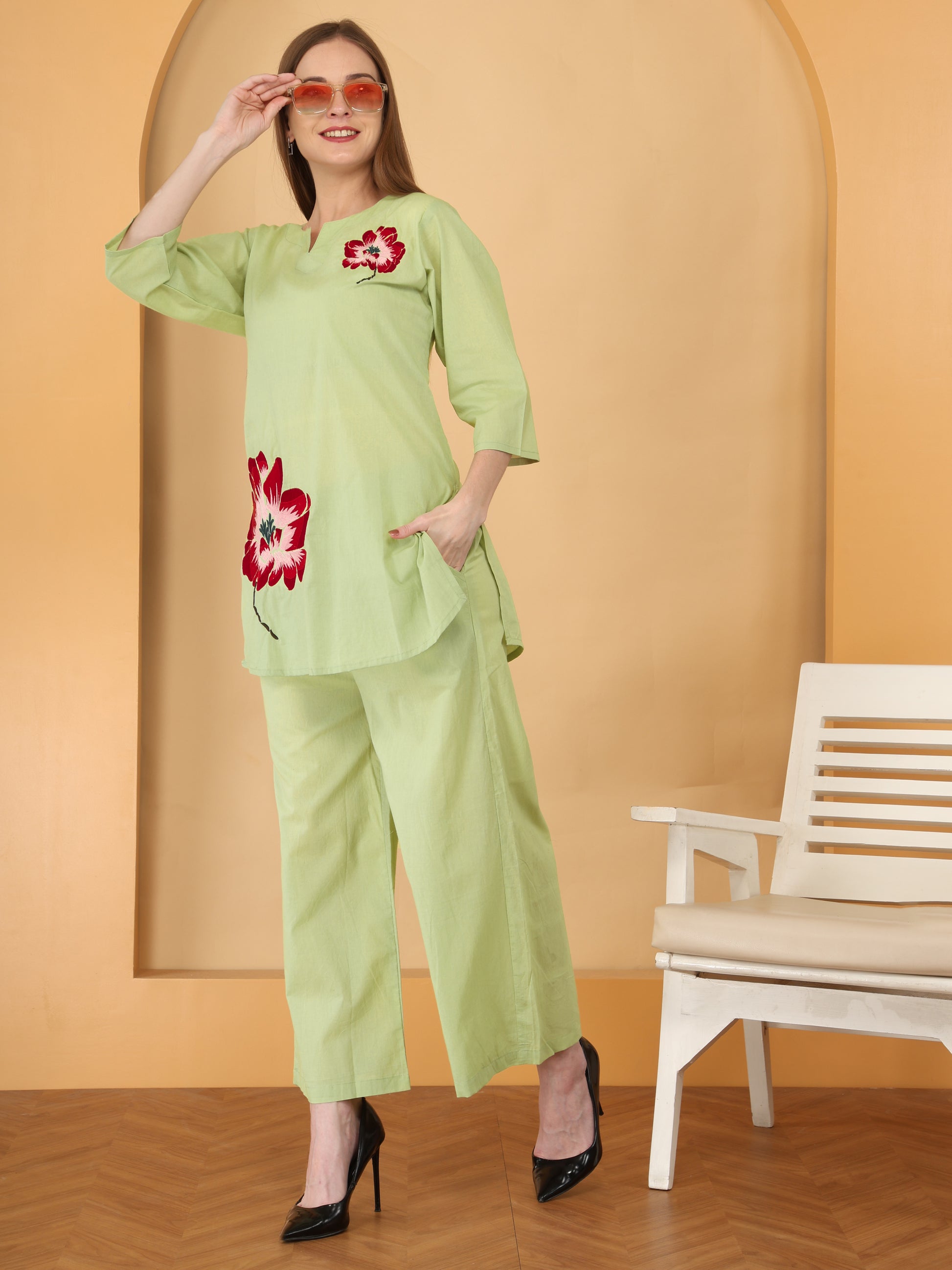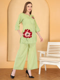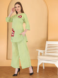 Unique co-ord set for beautiful ladies, stylish embroidered Co-ord Set, Formal Design Co-ord sets, summer wear, comfort and soft Fabric, Pista co-ord set for ladies, Women embroidered, Semi-formal co-ord set, minimilist design co-ord set