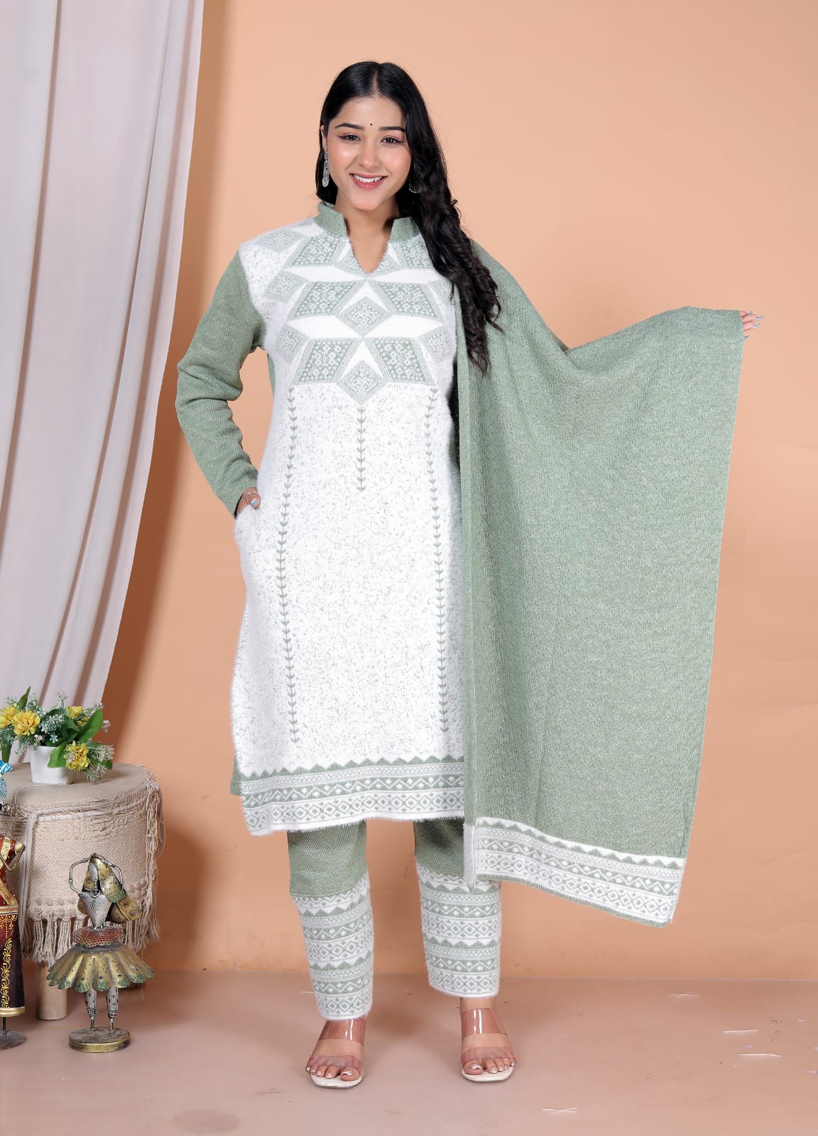 Beat the cold with this super-comfy and fashionable woolen kurti suit.A warm, lightweight, and stunning woolen suit for everyday elegance.