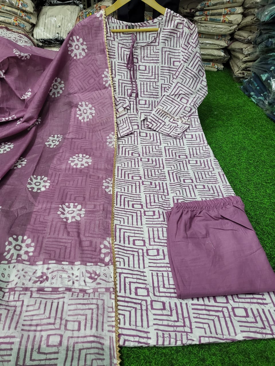 Soft cottan 60*60 Kurti procin print with ghota lace work