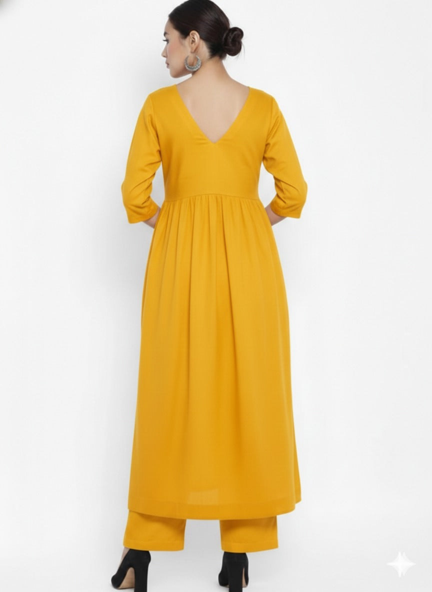 The v-Neck Soona Cotton Kurta Set The Calf Leight Kurta With Stylish Long Side Slit Set has V-Neck in Fontana The Deep Stylish V-Neck In Back With Folded SlevesThe Kurta Beautiful and Modern Silhouette