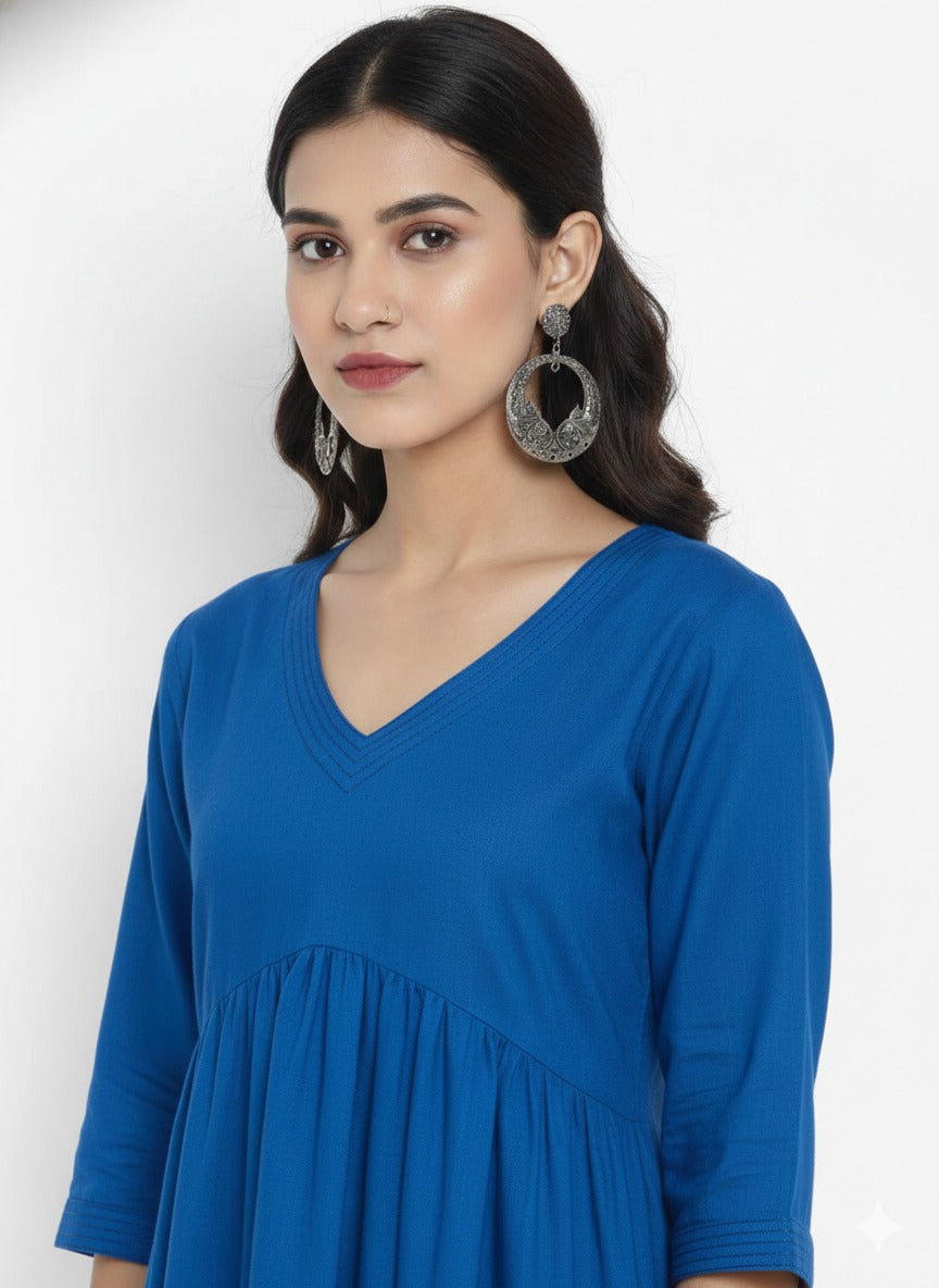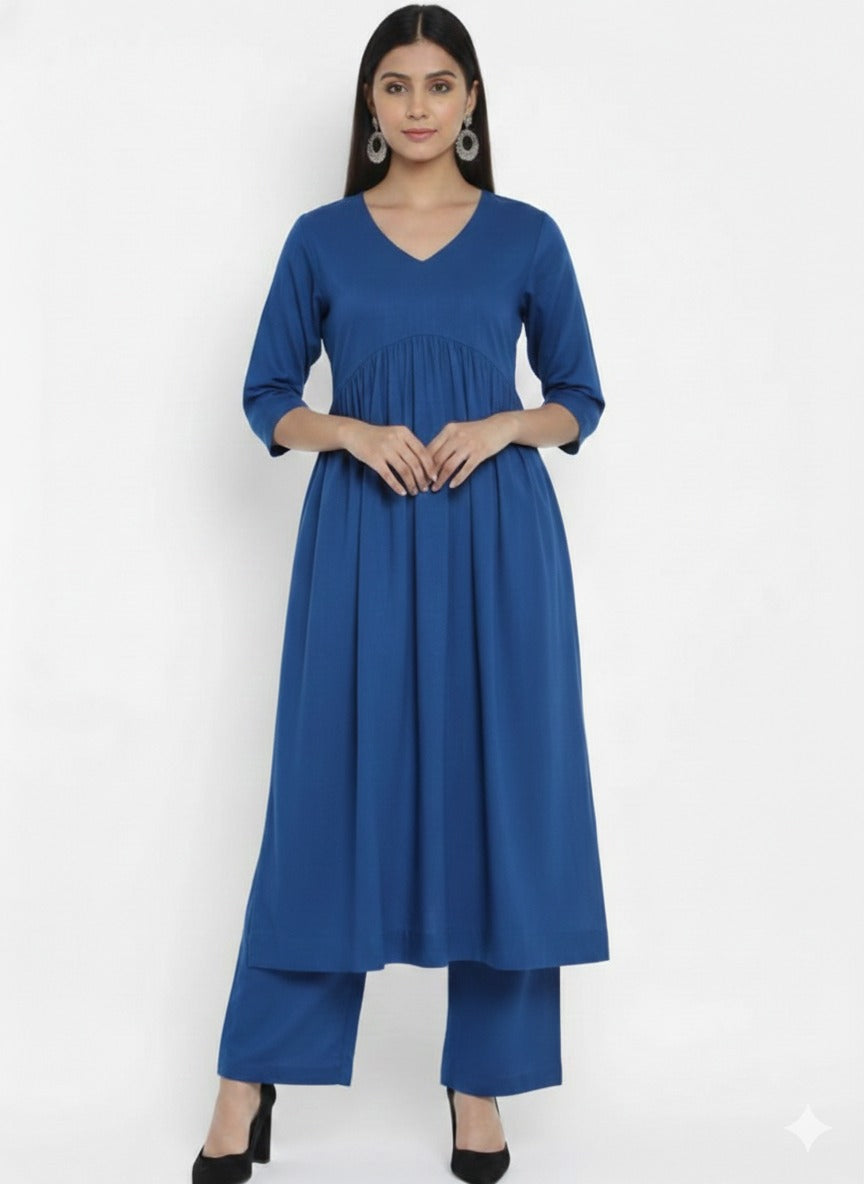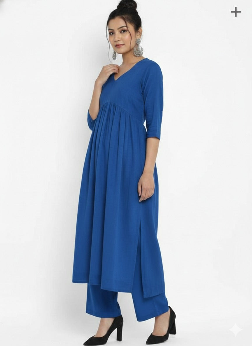 Stylo R-Blue The v-Neck blue Cotton Kurta Set The Calf Leight Kurta With Stylish Long Side Slit Set has V-Neck in Fontana The Deep Stylish V-Neck In Back With Folded SlevesThe Kurta Beautiful and Modern Silhouette