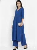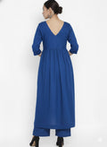Stylo R-Blue Stylish Cambric Cotton V-Neck Kurta Set With Silver Stitch Lines Paired With Comfortable Pants