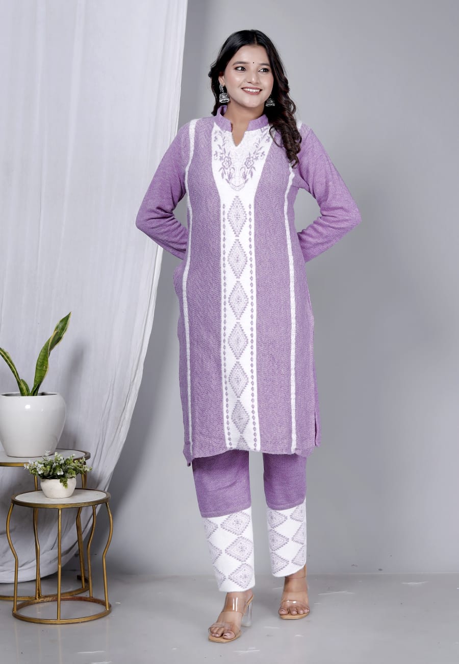 Beat the cold with this super-comfy and fashionable woolen kurti suit.A warm, lightweight, and stunning woolen suit for everyday elegance.