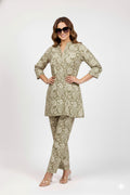 Most sets feature streamlined A-line or hip-length tunics paired with slim-cut or tapered trousers to create a cohesive, elongated look.These ensembles strike a balance between relaxed comfort and a "put-together" vibe, making them suitable for garden parties, brunch dates, or chic office wear.
