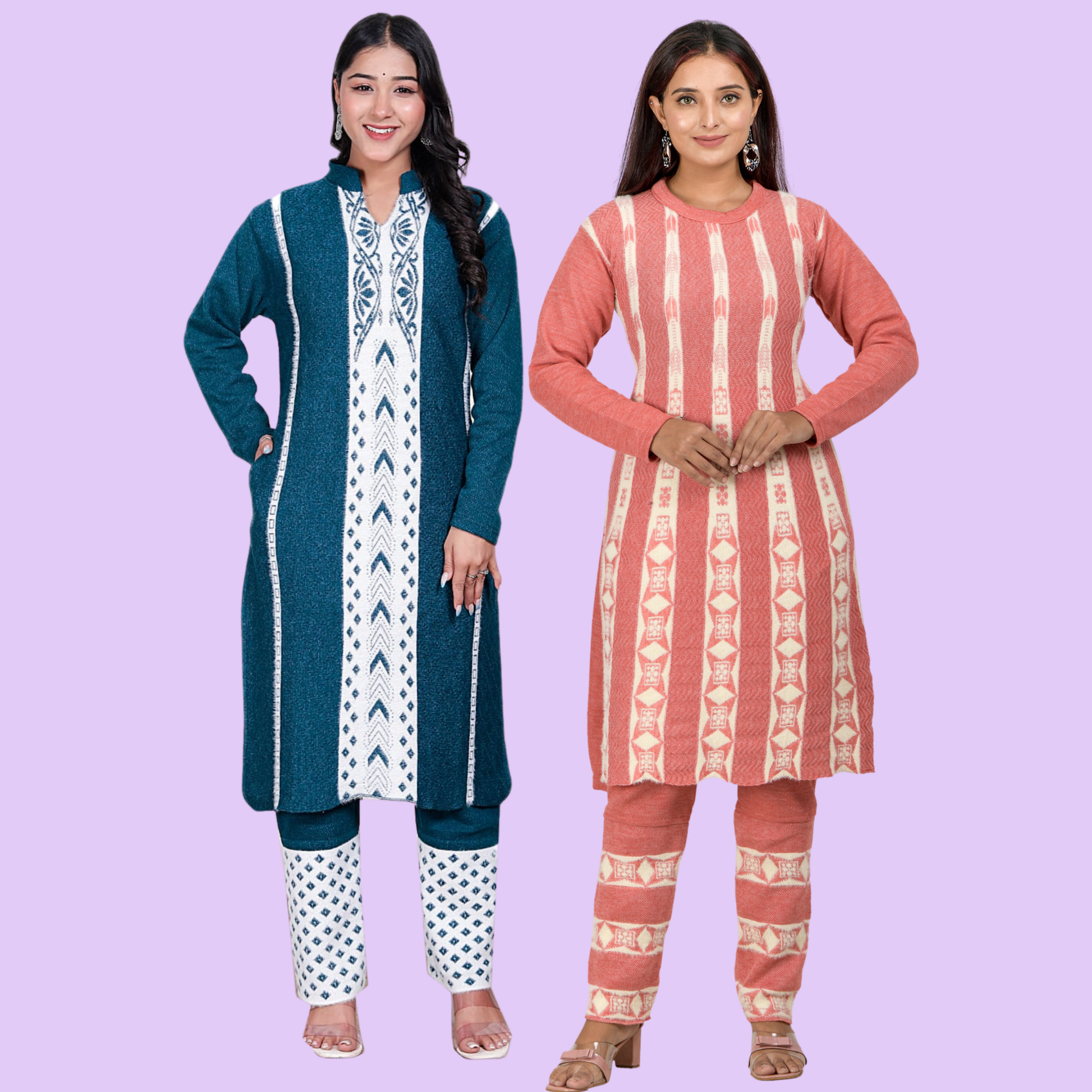 Beat the cold with this super-comfy and fashionable woolen kurti suit.A warm, lightweight, and stunning woolen suit for everyday elegance.
