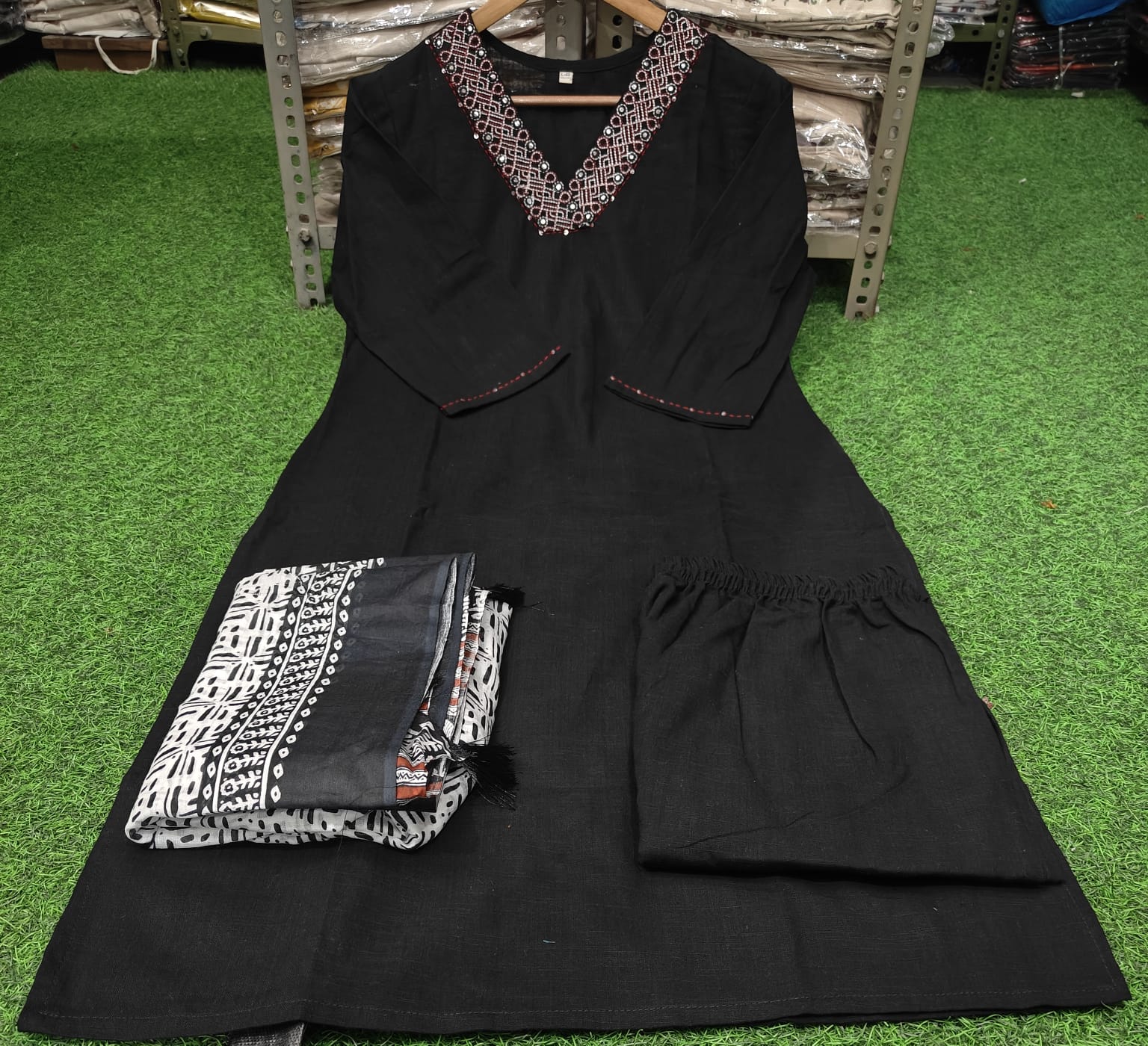 embroidered mirror work thread work all over